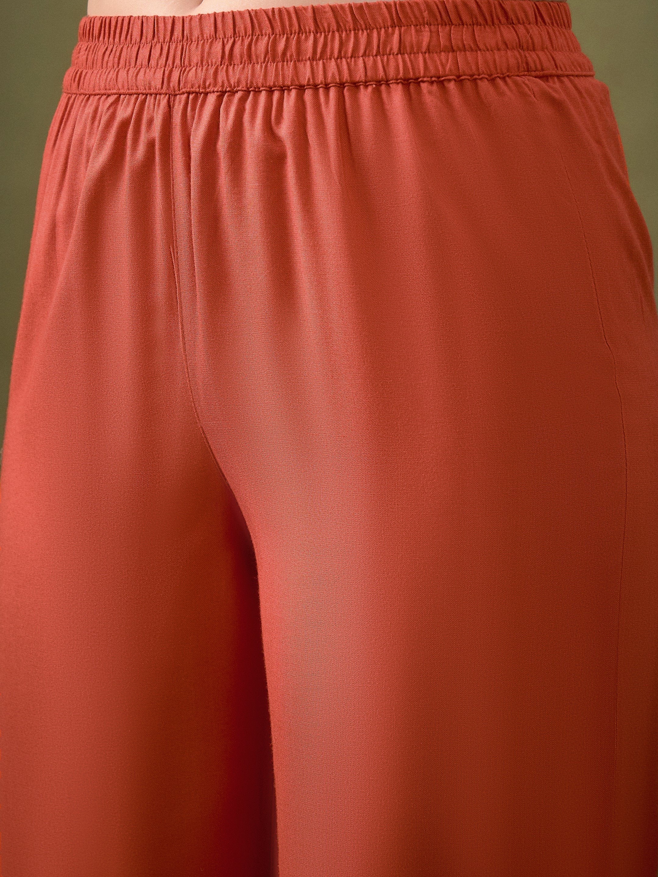 Rust All Over Embroidered Shirt With Palazzos, in Rayon fabric, Unlined, Regular Length, Comfort Fit, Button Closure, Straight Hemline and features All Over Embroidered Detail