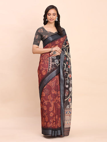Channel earthy elegance with this striking Rust Cotton cotton saree featuring a tribal-inspired floral print. Rich tones of mustard, red, and beige bring out the bold design, while the lightweight and breathable fabric makes it ideal for day-long wear. Whether you’re heading to a cultural event, family gathering, or want to make a style statement in daily life — this saree offers a perfect blend of tradition and trend.?? Tribal Elegance: Unique ethnic floral print that makes a bold impression?? Cultural Yet Modern: Perfect balance of earthy tones and trendy appeal?? Soft & Lightweight: Cotton cotton fabric for breathable all-day comfort?? Art-Inspired Pallu: Traditional patterns and textures reflect artisan beauty?? Versatile Styling: Great for pujas, workwear, family functions & gifting