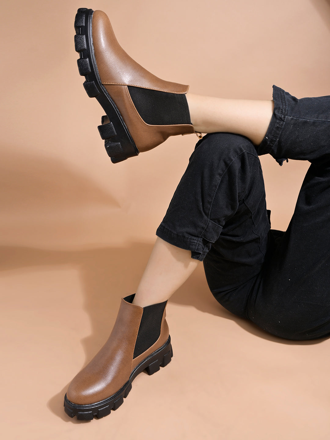 Shoetopia Smart Casual Tan Chelsea Boots For Women & Girls