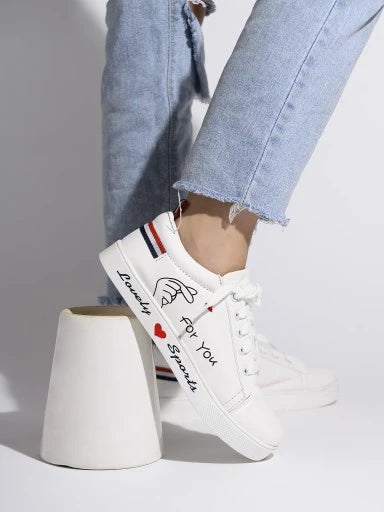 This Pair of White Lace Up Casual Sneakers Shoes for Girls & Women Online On Shoetopia.com under the offer 2 for 999. It is made of Synthetic Upper material & TPR sole and has lace ups fastening. These quirky sneakers are a must-have for every wardrobe. Complete The Look With These top-notch Casual White Lace Up Shoes For Girls & Women by Shoetopia that will keep you looking stylish all Years long. This pair can be styled with a casual T-shirt and some slim jeans for a cute date look. Explore a Wide Range of Sneaker Shoes for girls, ladies & Women Shoes at the very lowest price. Now!