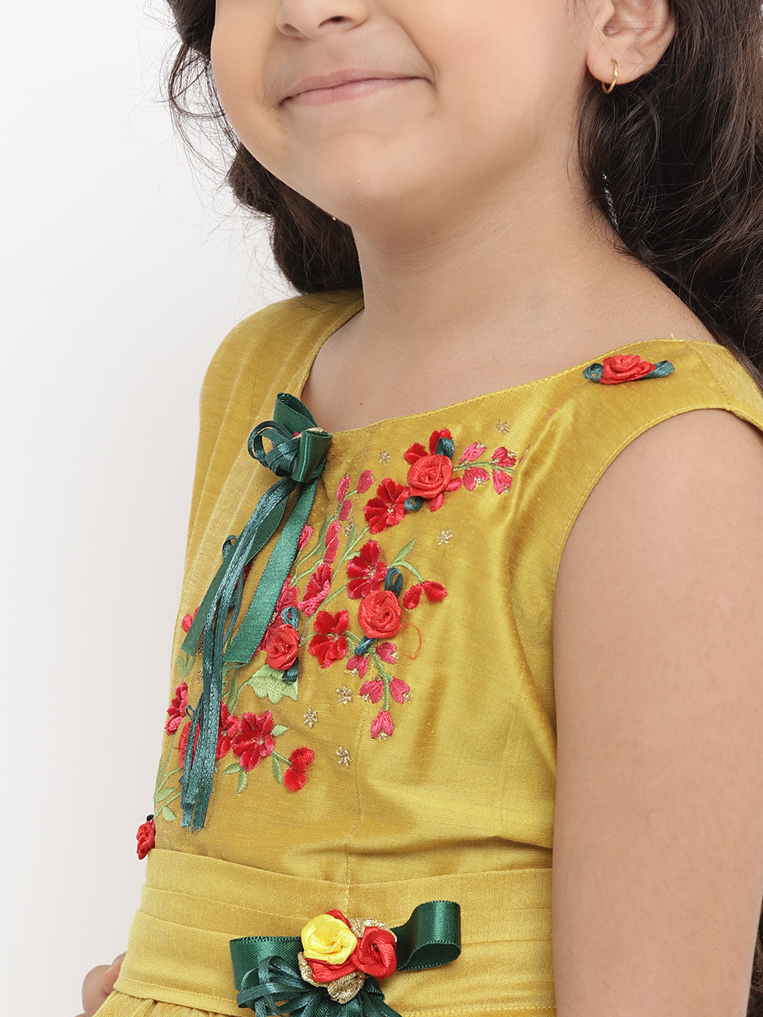 Yellow embellished woven fit and flare dress, has a round neck, sleeveless, concealed zip closure, an attached lining, flared hem