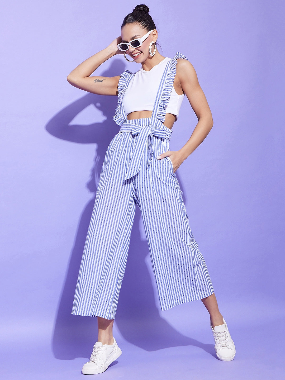 Women's Blue & White Stripe Pinafore Dungaree (T Shirt not included)