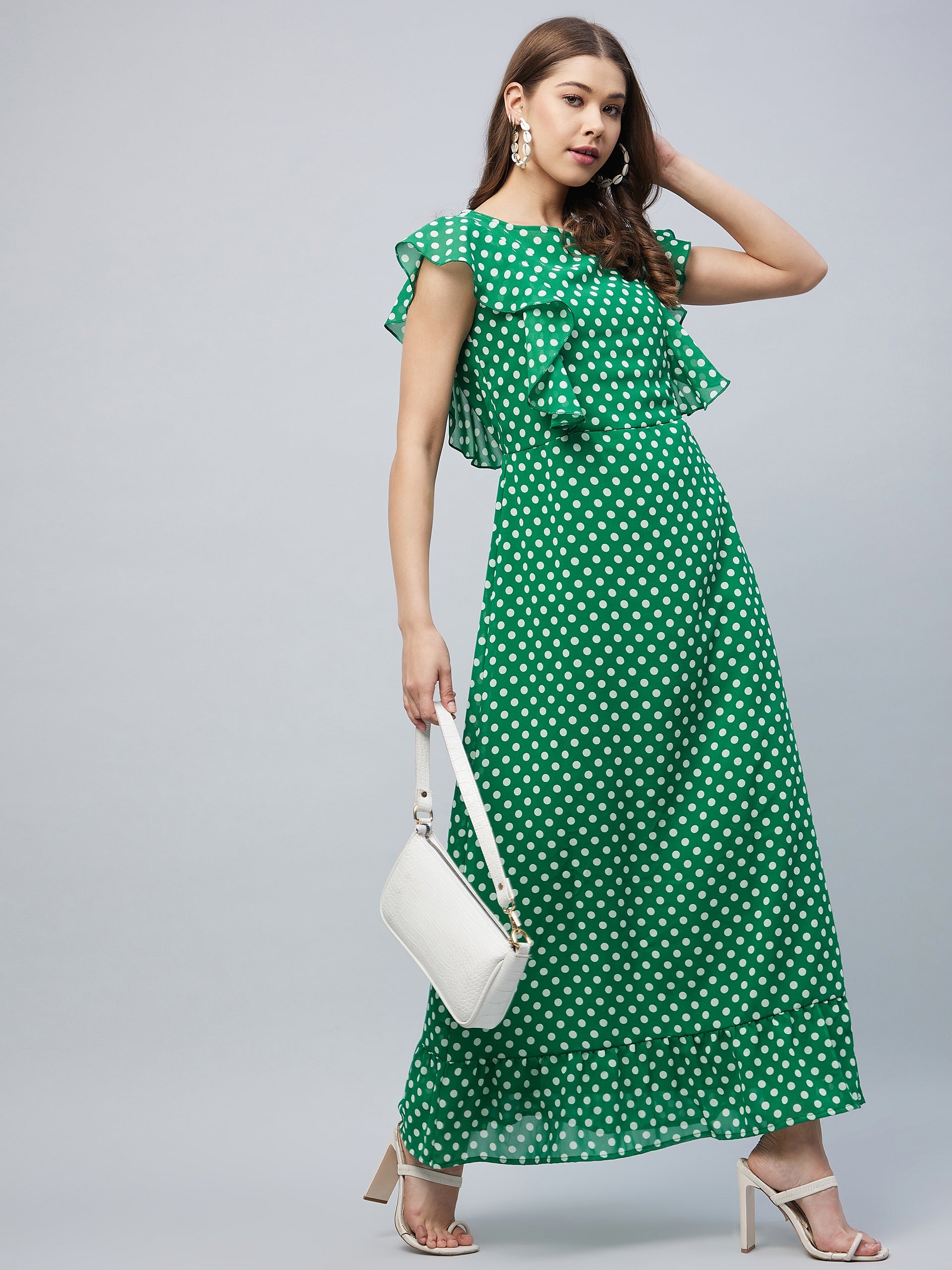 Sleeve: Flutter|Pattern: Polka|Machine Wash|Polyester