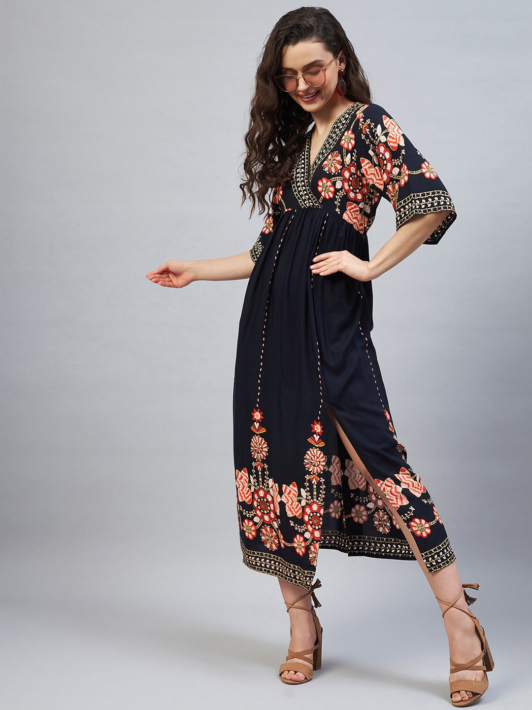 Women's Printed V Neck Dress
