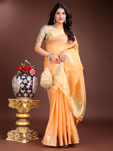 Experience grace the easy way with this Cotton Ready to Wear Saree, pre-stitched from the waist for your convenience. The warm Orange tone with golden borders radiates subtle luxury, making it your perfect pick for daily elegance or light festive charm. It’s more than a saree – it’s your everyday confidence, stitched beautifully.