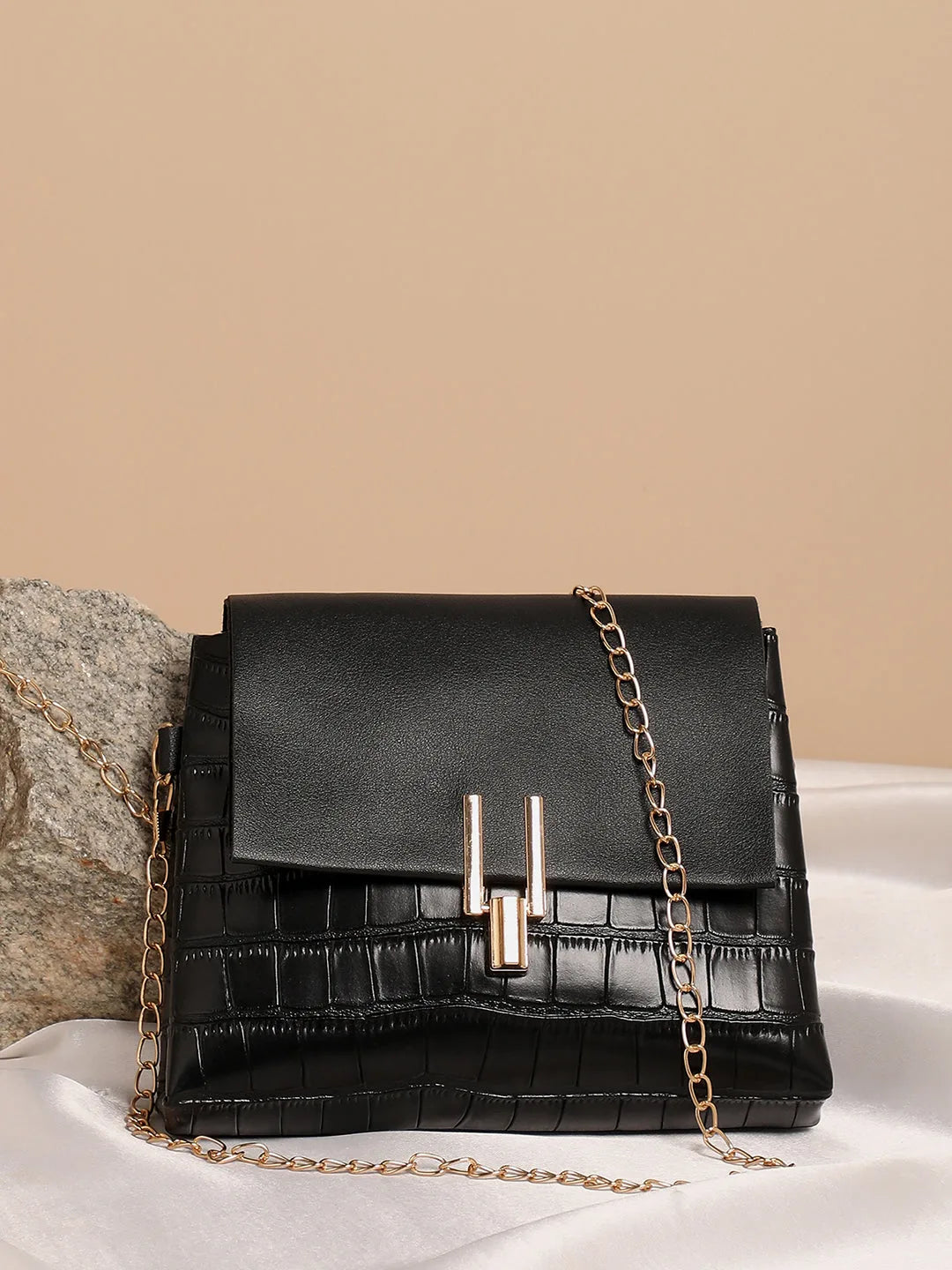 Textured Casual Regular Sling Bag with Push Lock For Women