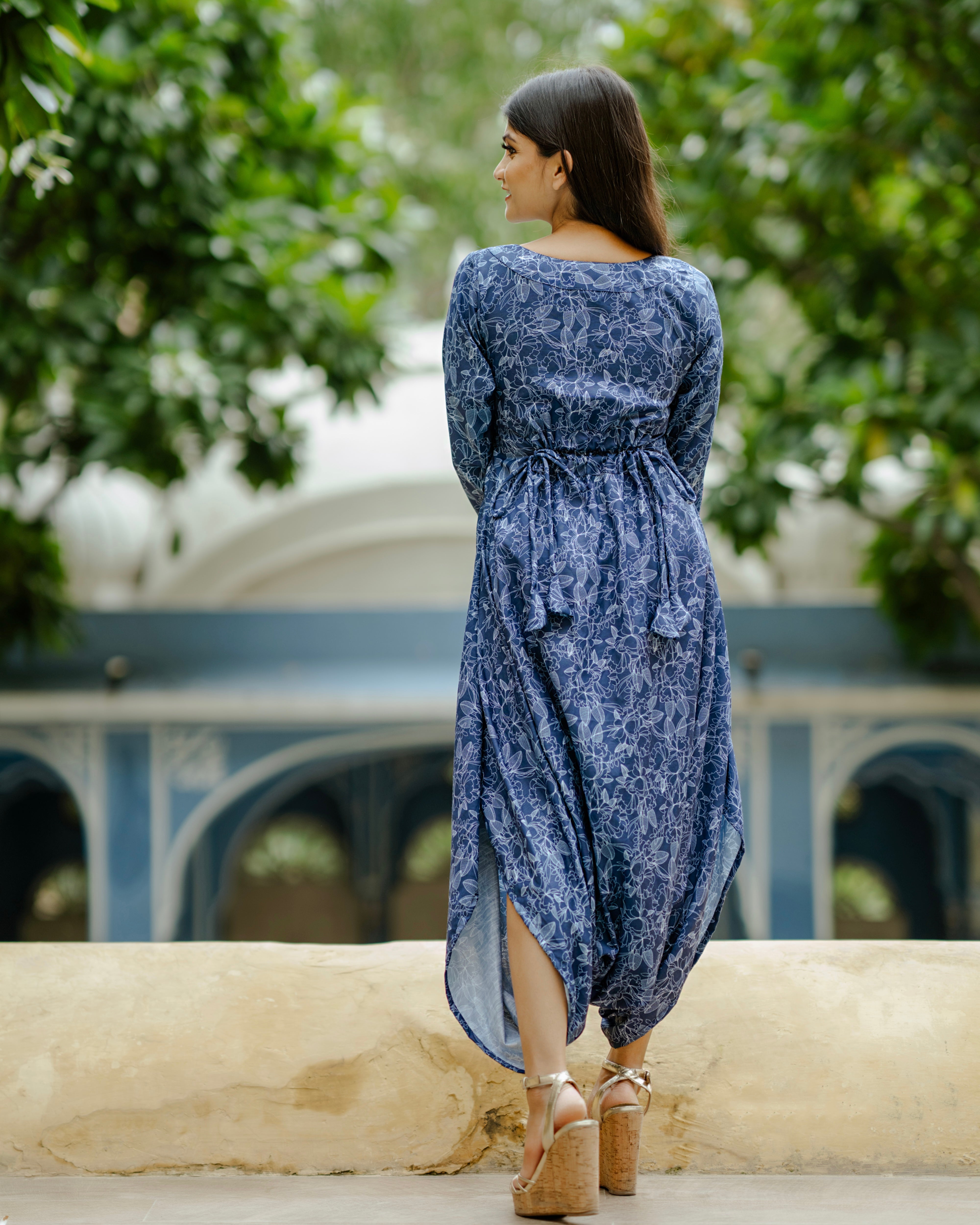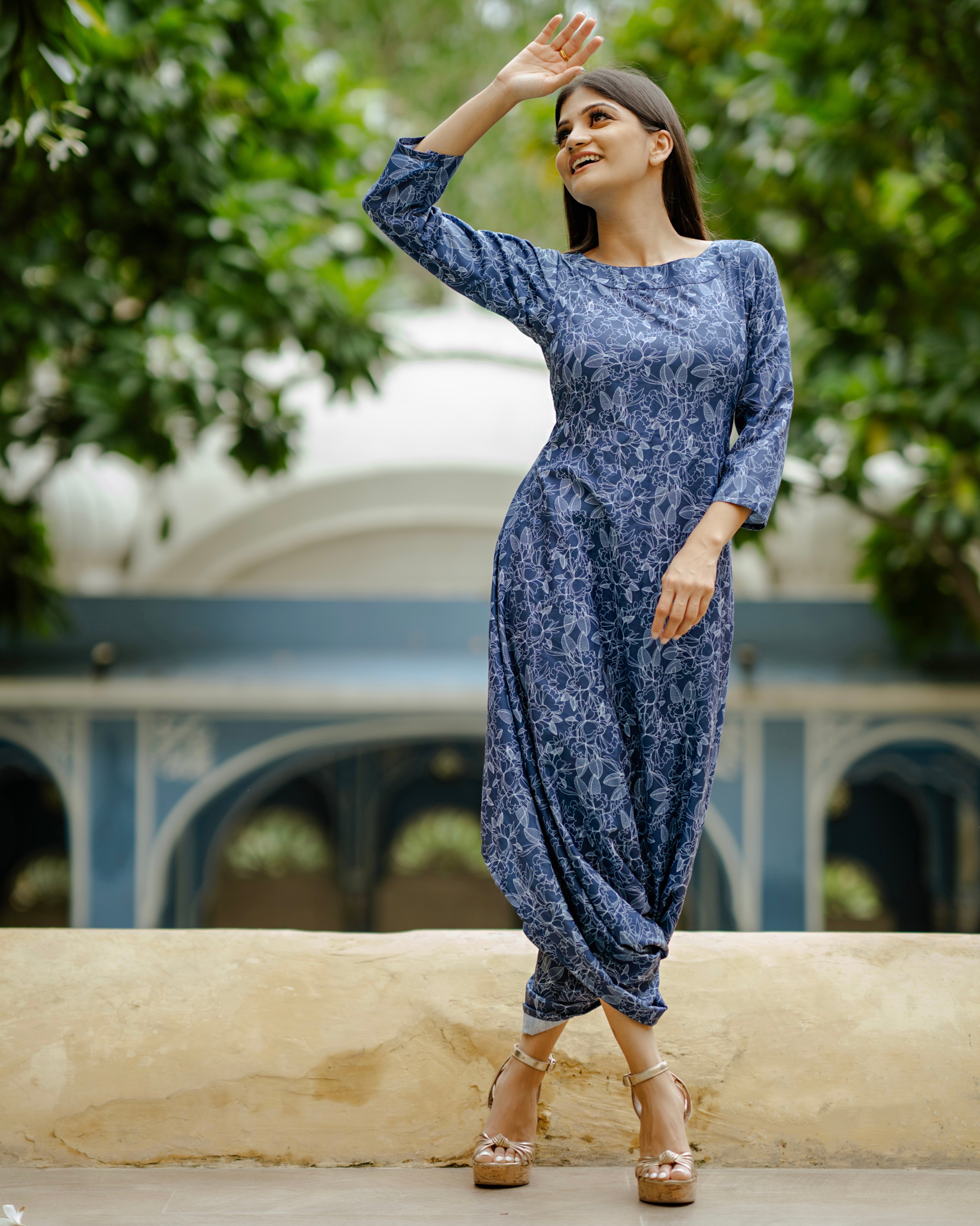Experience comfort and style with the Twilight Blue Dhoti Jumpsuit. A Pasha India signature, this jumpsuit draws inspiration from dhotis. With adjustable sizing and an easy fit, it effortlessly blends comfort and chic fashion, offering a unique and fashionable addition to your wardrobe.