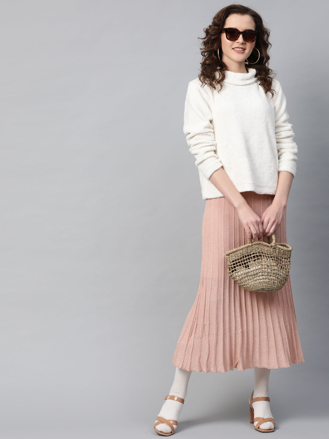 White High Neck Faux Fur Sweatshirt, in Fur fabric, Unlined, Regular Length, Comfort Fit, No Closure, Straight Hemline and features Inlay Pockets At Side