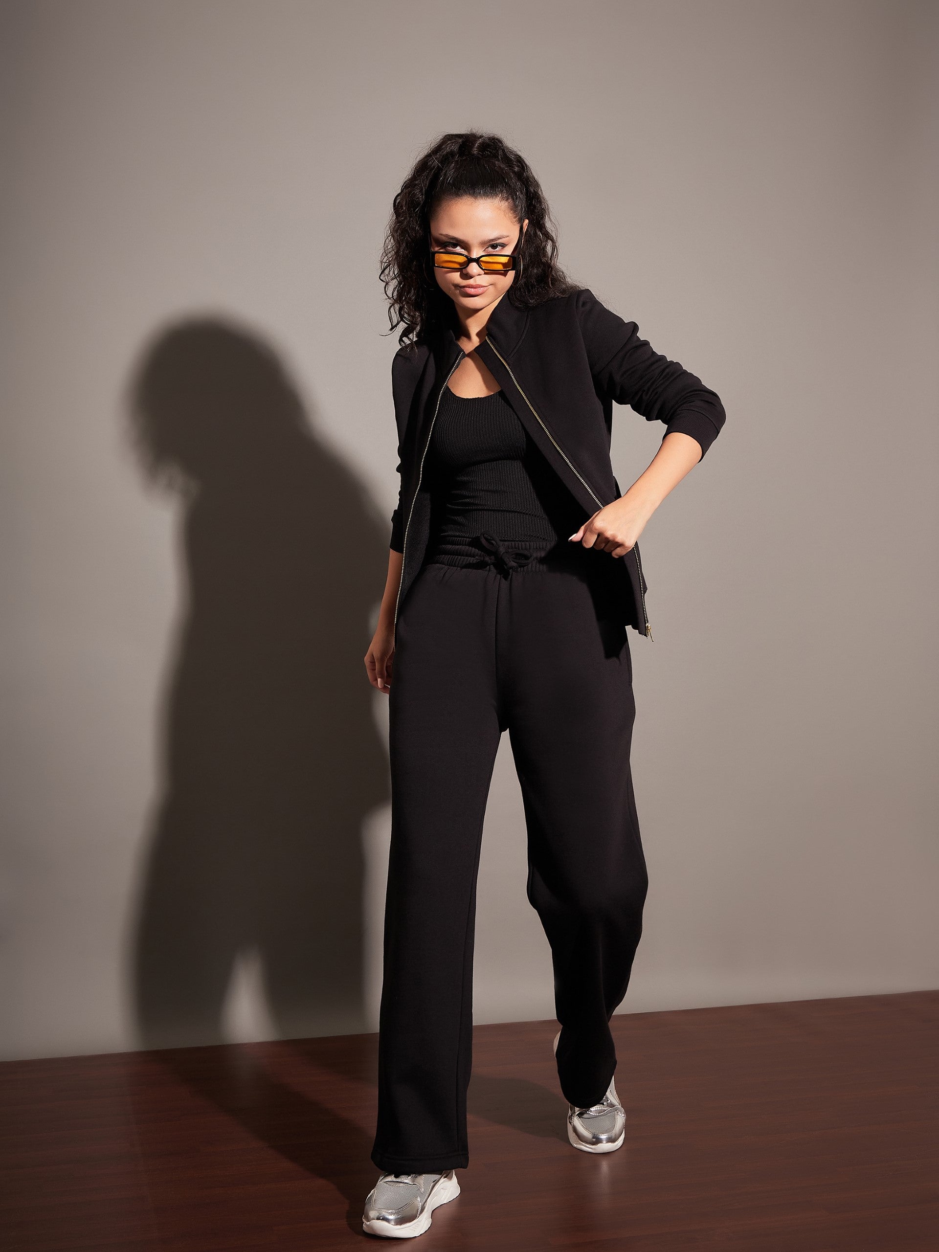 Black Fleece Zipper Jacket, in Fleece fabric, Unlined, Regular Length, Regular Fit, Zipper Closure, Straight Hemline and features Zipper Closure