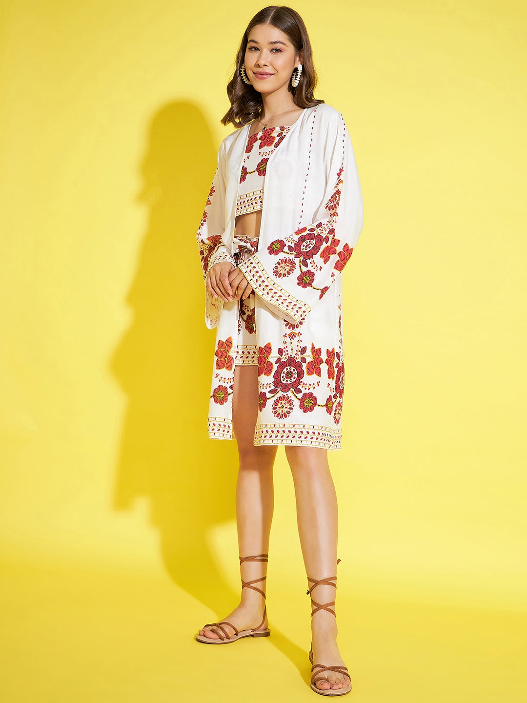 Women's 3 Piece Shrug, Inner & Shorts Rayon Co-Ord Set