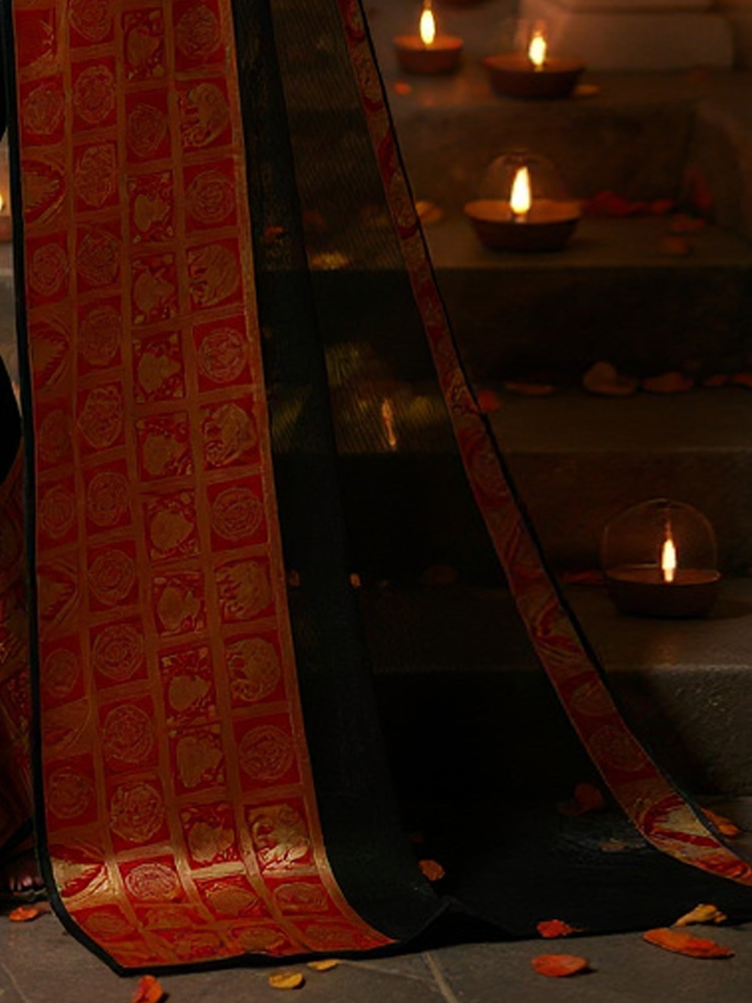 This saree from the house of SAREE MALL is made from Art SIlk and is Black in color. SAREE MALL Ethnic Sarees comes With Blouse Piece, Which can be Stitched according to Your Taste and Preference. This Saree is Crafted by Skill Craftsmen without Compromising on its Quality. With This Beautiful Design and Fabric, This Saree will fetch You Oodles of Compliments and Praise. saree fit size is 5.5 mtr saree & 0.8 mtr blouse, Free Size |.