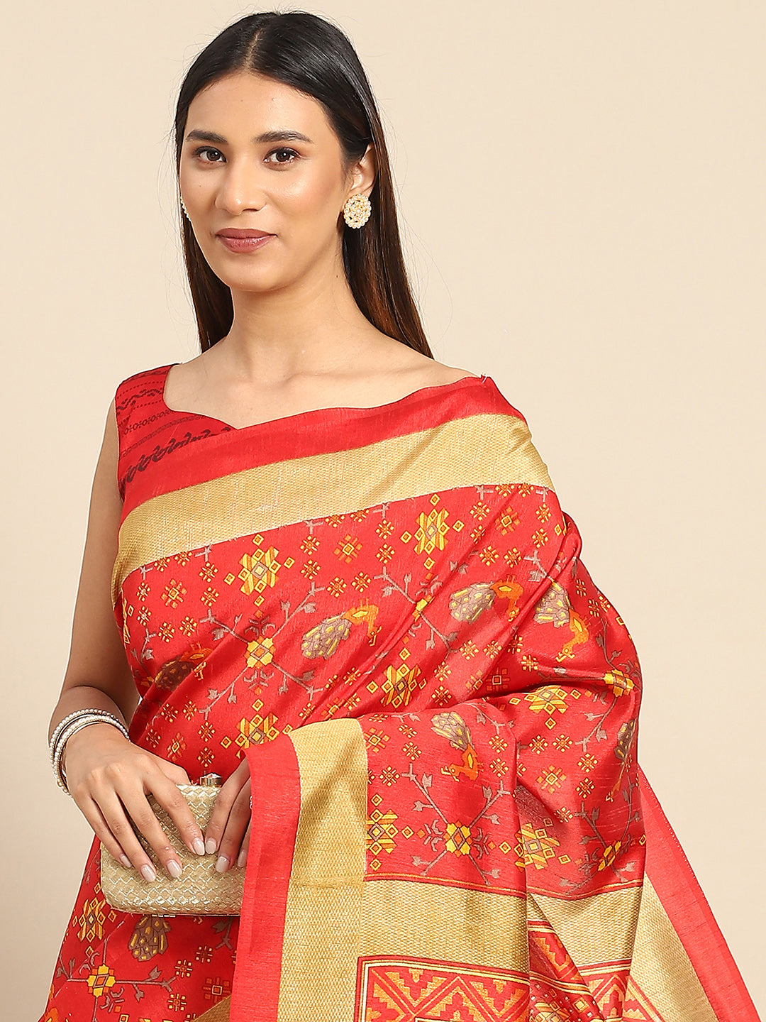 Women's Art Silk Red WovenDesign DesignerSaree With Blouse Piece