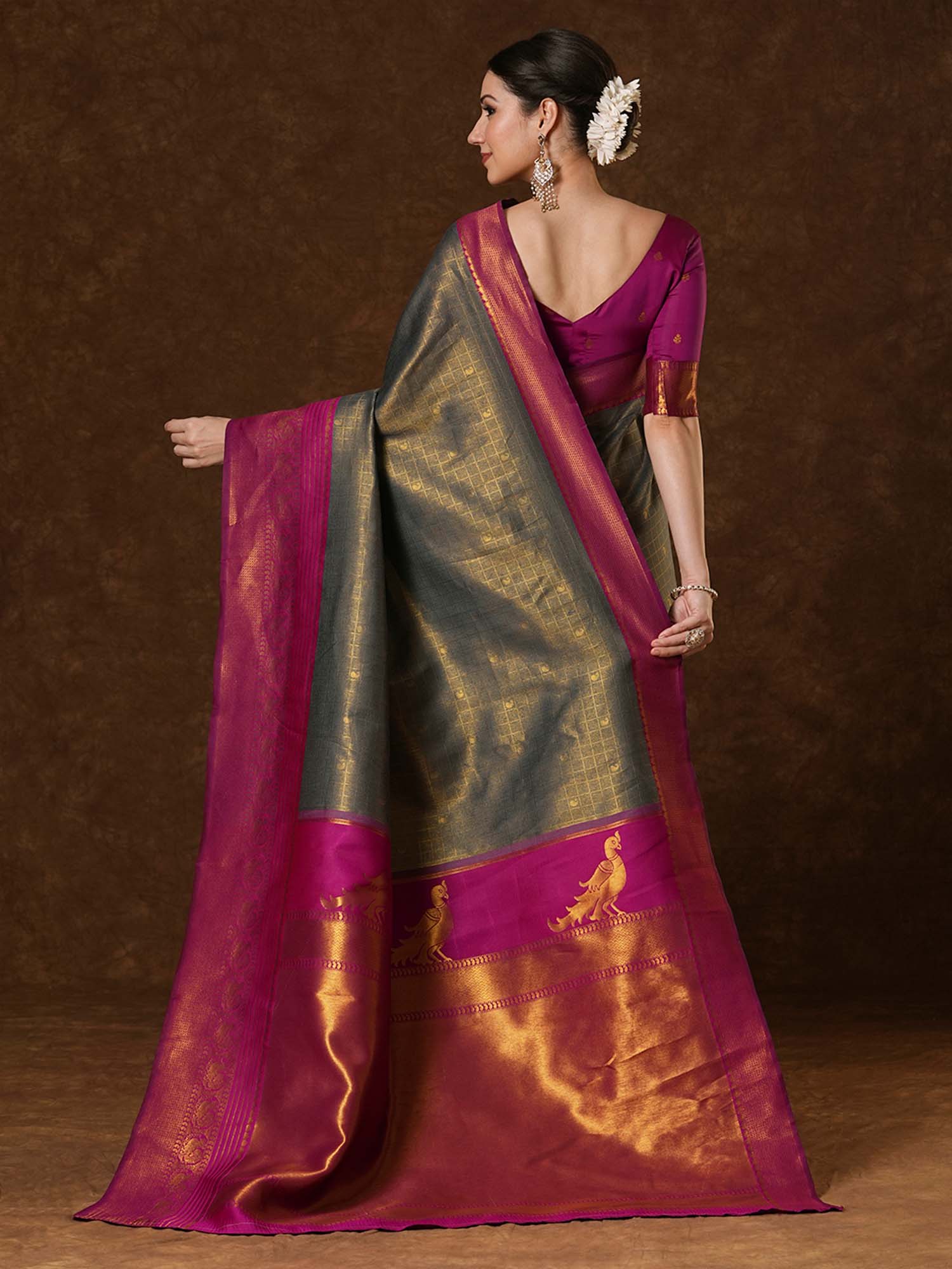 Women's Banarasi Silk Grey Woven Design Designer Saree With Blouse Piece