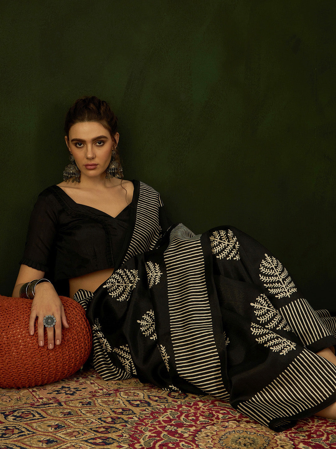 This saree from the house of Naari is made from Bhagalpuri Silk and is Black in color. Naari Ethnic Sarees comes With Blouse Piece, Which can be Stitched according to Your Taste and Preference. This Saree is Crafted by Skill Craftsmen without Compromising on its Quality. With This Beautiful Design and Fabric, This Saree will fetch You Oodles of Compliments and Praise. saree fit size is 5.5 mtr saree & 0.8 mtr blouse, Free Size |.