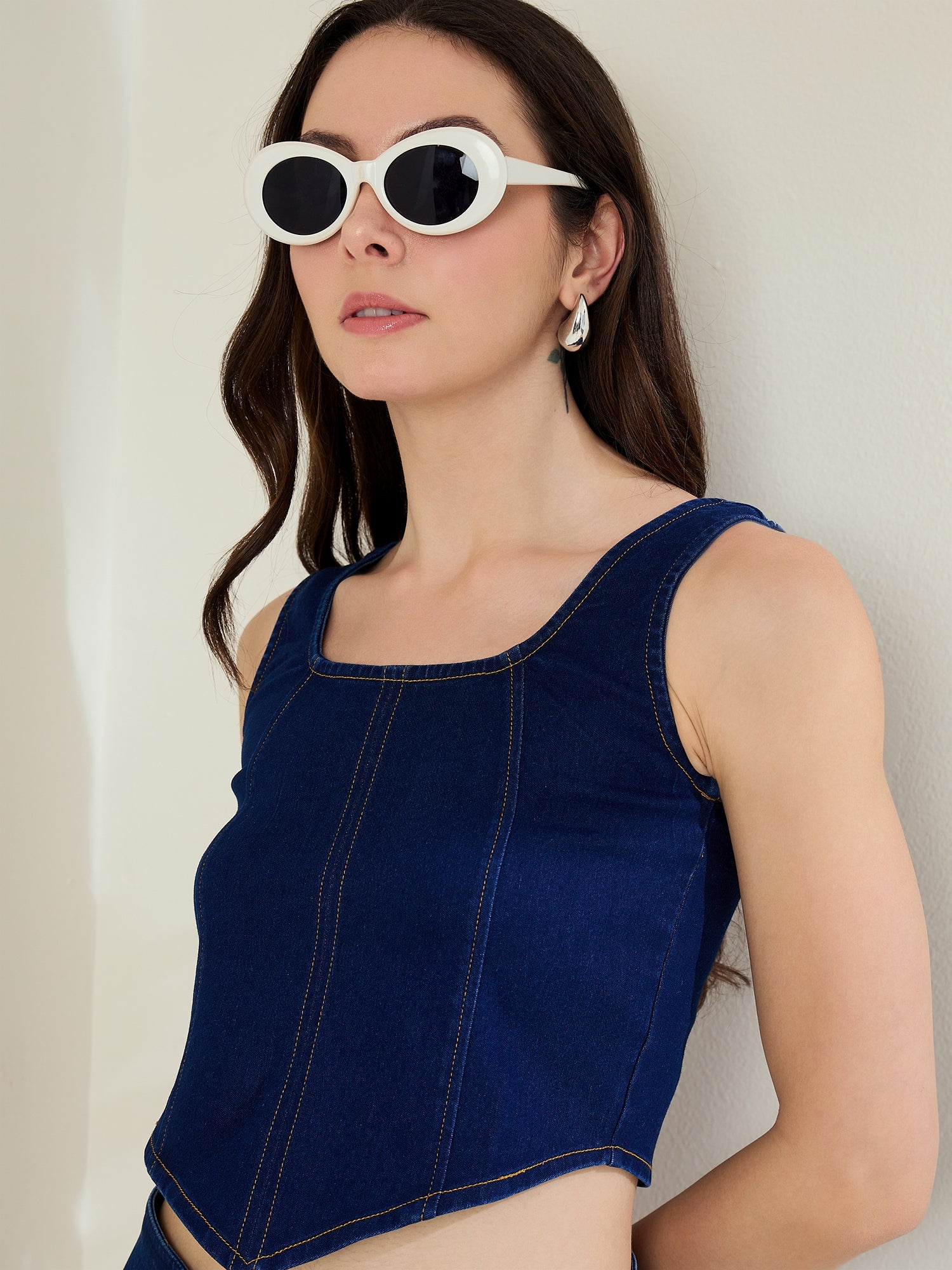 Sleeve: Sleeveless | Pattern:Solid | | Fabric: Denim Lycra