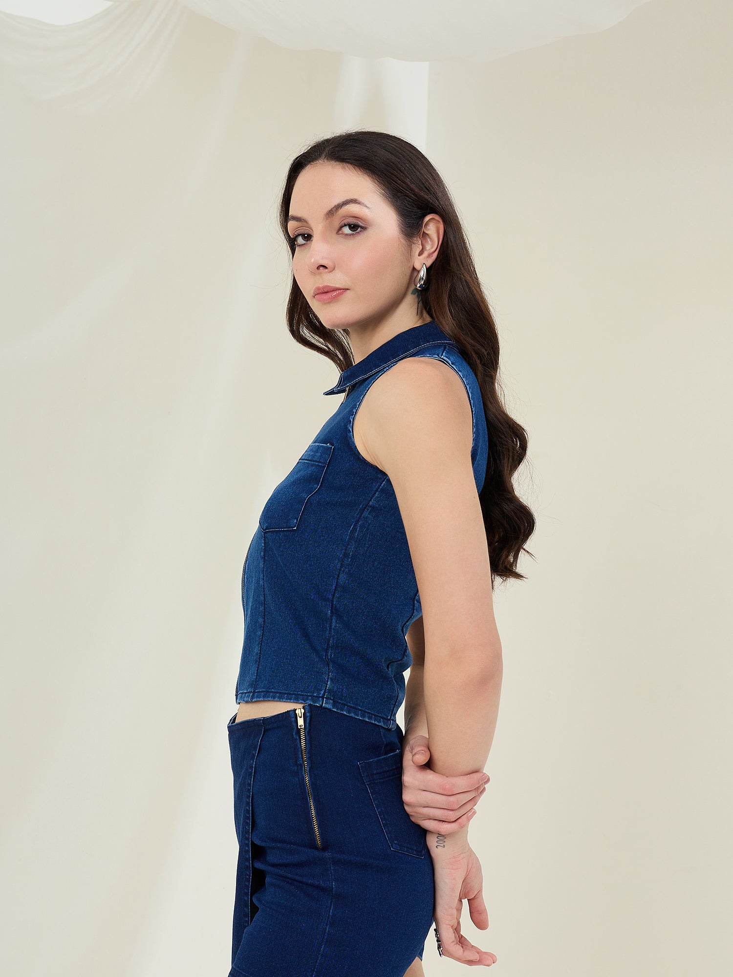 Sleeve: Sleeveless | Pattern:Solid | | Fabric: Denim Lycra