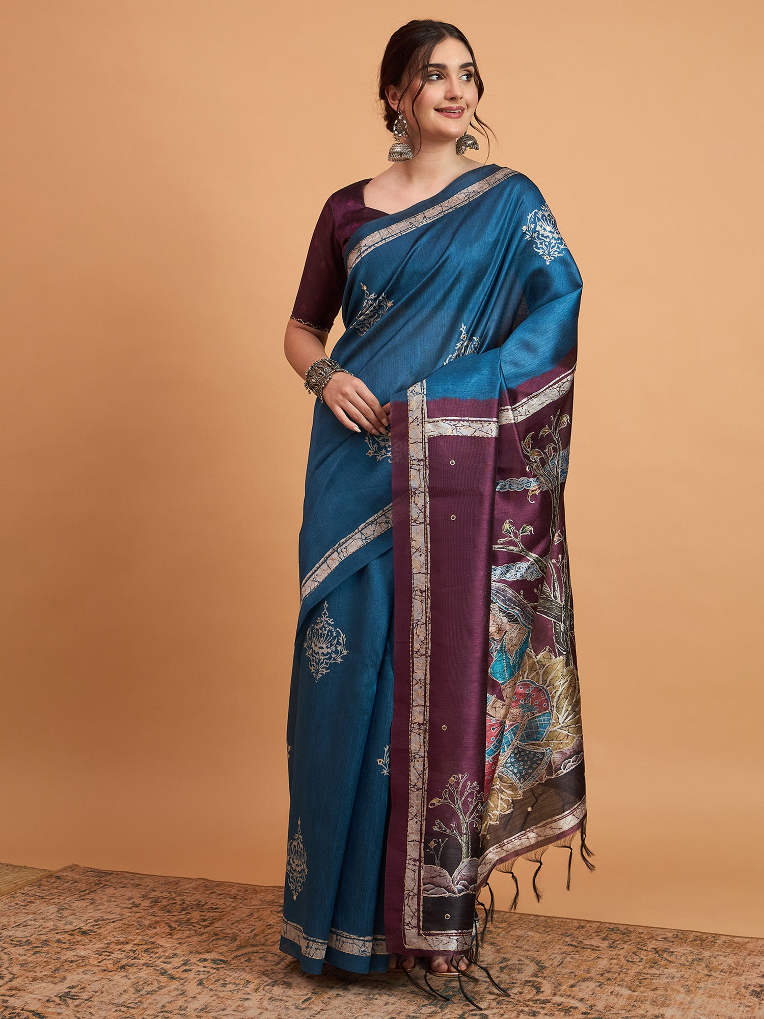 This saree from the house of Naari is made from Cotton Blend and is Teal blue in color. Naari Ethnic Sarees comes With Blouse Piece, Which can be Stitched according to Your Taste and Preference. This Saree is Crafted by Skill Craftsmen without Compromising on its Quality. With This Beautiful Design and Fabric, This Saree will fetch You Oodles of Compliments and Praise. saree fit size is 5.5 mtr saree & 0.8 mtr blouse, Free Size |.