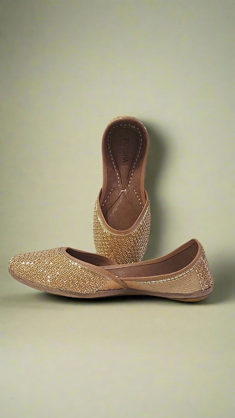 A pair of gold embellished Jutti Square toe, has regular styling, slip-on detail Specifications Type : Formal FlatsToe Shape : Square ToeFastening and Back Detail : Slip-OnOccasion : Party wearAnkle Height : RegularSole Material : Leather