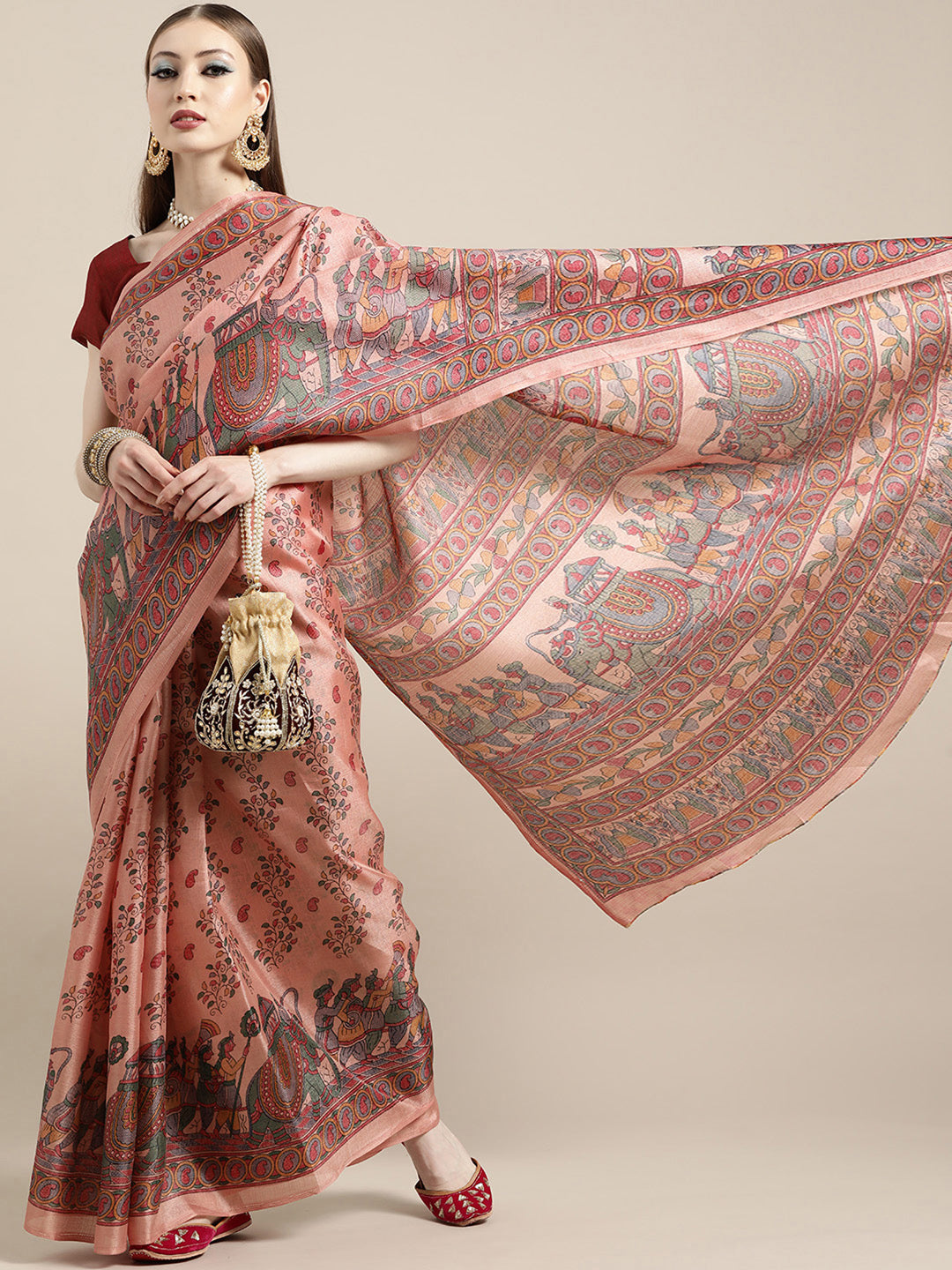 This saree from the house of SAREE MALL is made from Khadi Silk and is Pink in color. SAREE MALL Ethnic Sarees comes With Blouse Piece, Which can be Stitched according to Your Taste and Preference. This Saree is Crafted by Skill Craftsmen without Compromising on its Quality. With This Beautiful Design and Fabric, This Saree will fetch You Oodles of Compliments and Praise. saree fit size is 5.5 mtr saree & 0.8 mtr blouse, Free Size |.