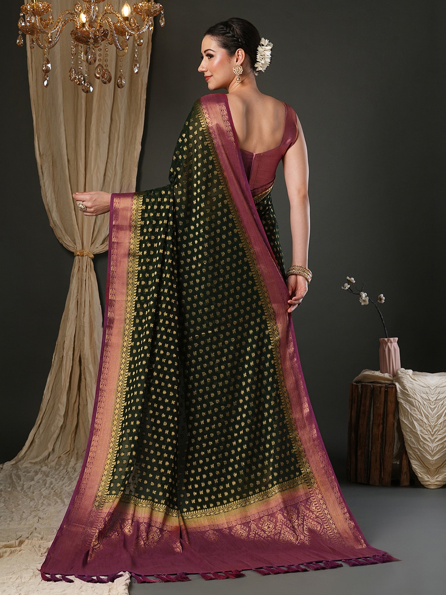 This saree from the house of SAREE MALL is made from Pure Georgette and is Green in color. SAREE MALL Ethnic Sarees comes With Blouse Piece, Which can be Stitched according to Your Taste and Preference. This Saree is Crafted by Skill Craftsmen without Compromising on its Quality. With This Beautiful Design and Fabric, This Saree will fetch You Oodles of Compliments and Praise. saree fit size is 5.5 mtr saree & 0.8 mtr blouse, Free Size |.