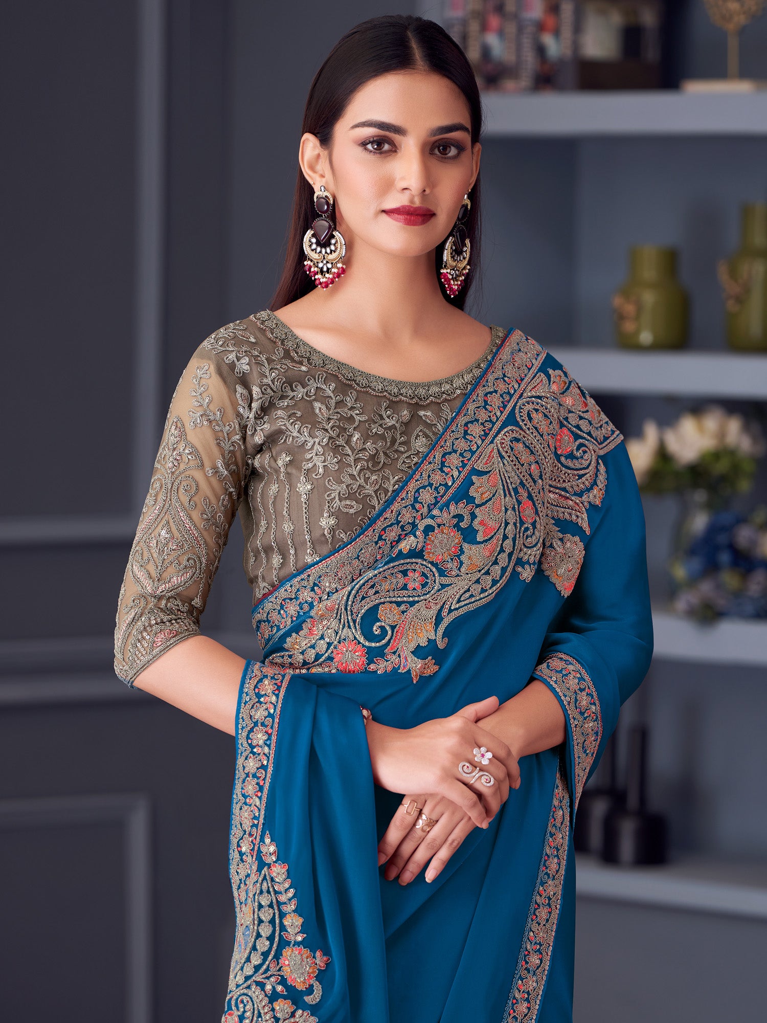 This saree from the house of SAREE MALL is made from Satin and is Blue in color. SAREE MALL Ethnic Sarees comes With Blouse Piece, Which can be Stitched according to Your Taste and Preference. This Saree is Crafted by Skill Craftsmen without Compromising on its Quality. With This Beautiful Design and Fabric, This Saree will fetch You Oodles of Compliments and Praise. saree fit size is 5.5 mtr saree & 0.8 mtr blouse, Free Size |.
