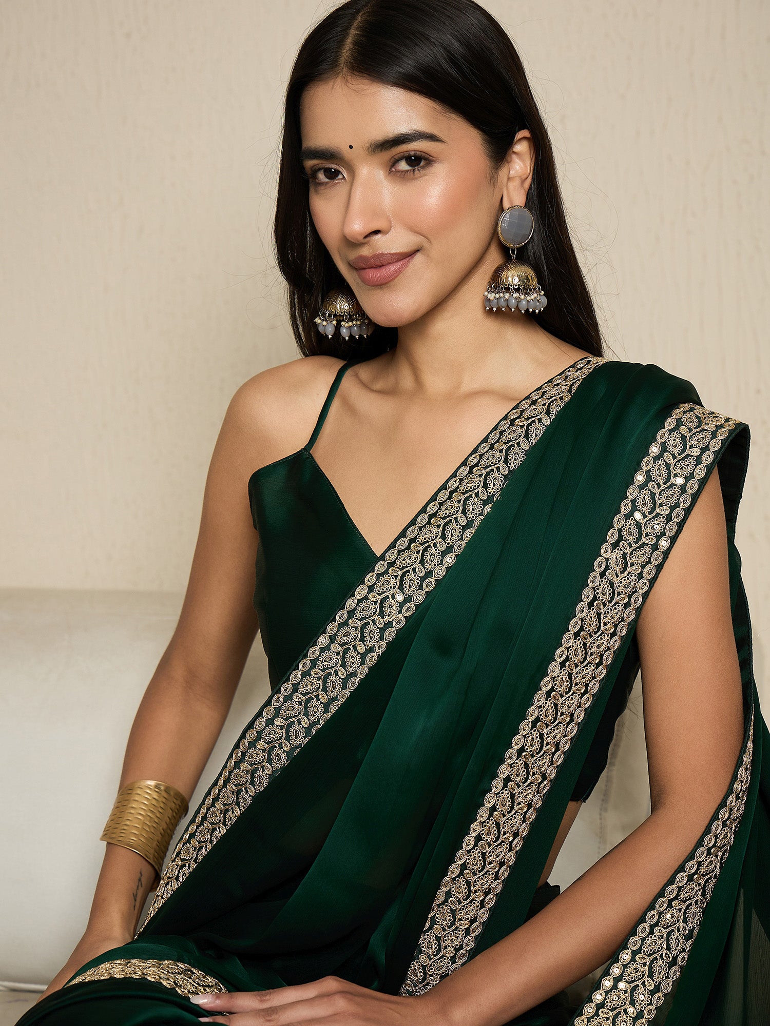 This saree from the house of Naari is made from Satin and is Dark Green in color. Naari Ethnic Sarees comes With Blouse Piece, Which can be Stitched according to Your Taste and Preference. This Saree is Crafted by Skill Craftsmen without Compromising on its Quality. With This Beautiful Design and Fabric, This Saree will fetch You Oodles of Compliments and Praise. saree fit size is 5.5 mtr saree & 0.8 mtr blouse, Free Size |fabric - chiffon satin 2nd option.