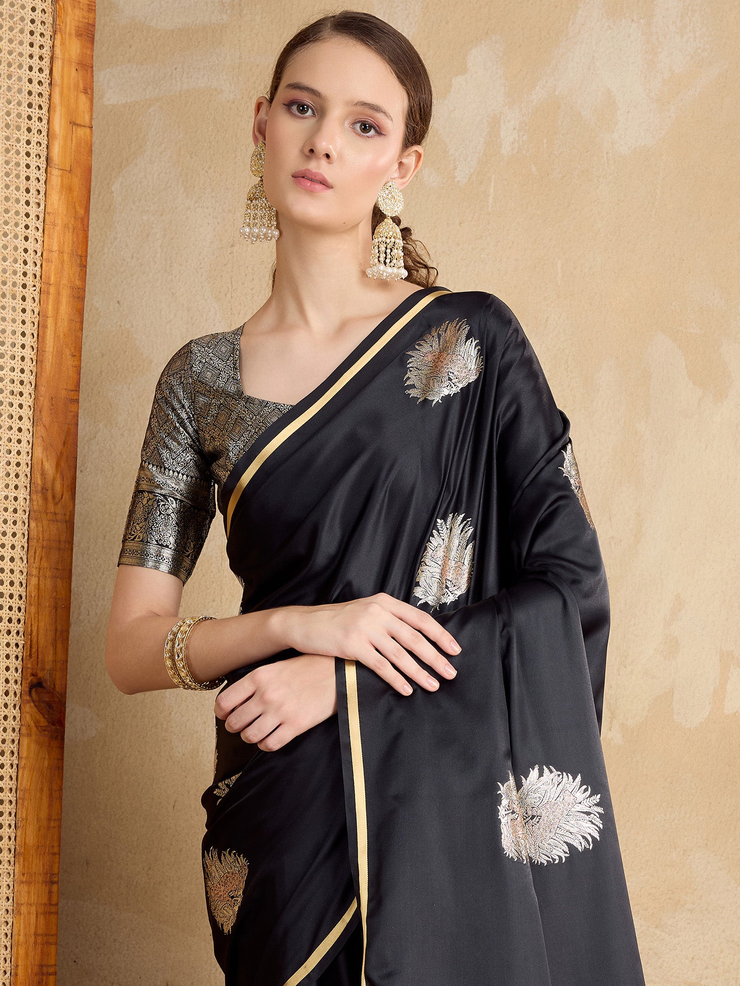 This saree from the house of SAREE MALL is made from Satin Silk and is Black in color. SAREE MALL Ethnic Sarees comes With Blouse Piece, Which can be Stitched according to Your Taste and Preference. This Saree is Crafted by Skill Craftsmen without Compromising on its Quality. With This Beautiful Design and Fabric, This Saree will fetch You Oodles of Compliments and Praise. saree fit size is 5.5 mtr saree & 0.8 mtr blouse, Free Size |.