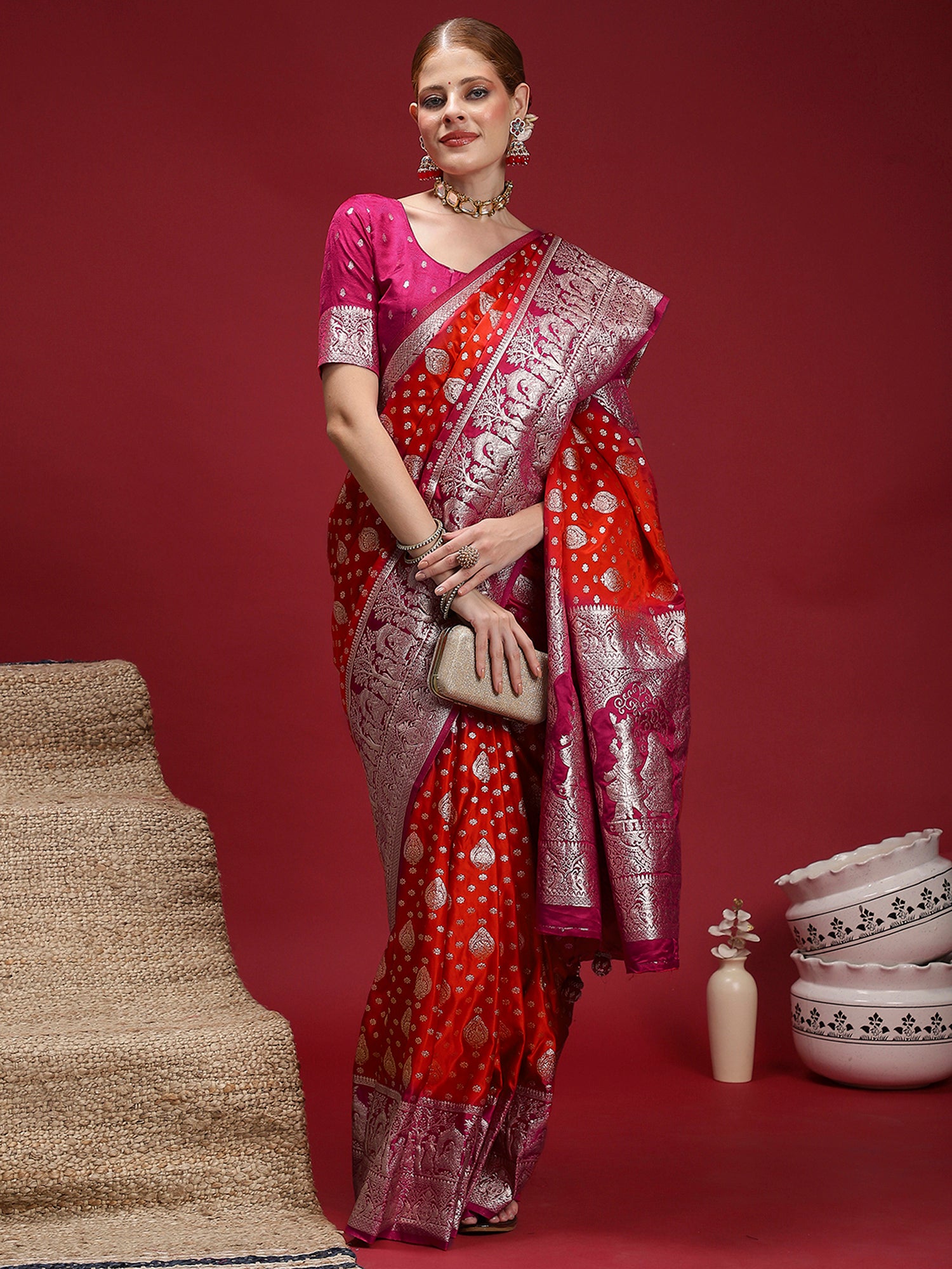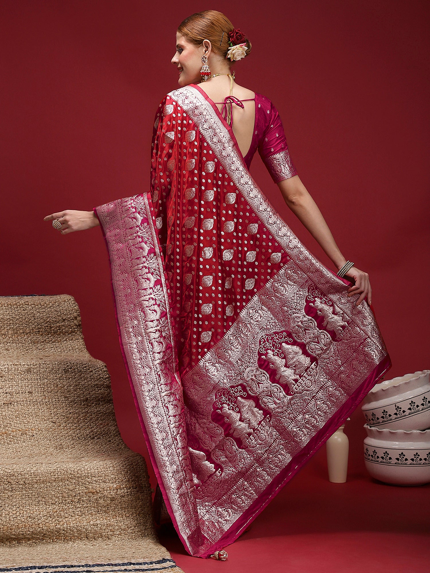 This saree from the house of SAREE MALL is made from Satin Silk and is Red in color. SAREE MALL Ethnic Sarees comes With Blouse Piece, Which can be Stitched according to Your Taste and Preference. This Saree is Crafted by Skill Craftsmen without Compromising on its Quality. With This Beautiful Design and Fabric, This Saree will fetch You Oodles of Compliments and Praise. saree fit size is 5.5 mtr saree & 0.8 mtr blouse, Free Size |.