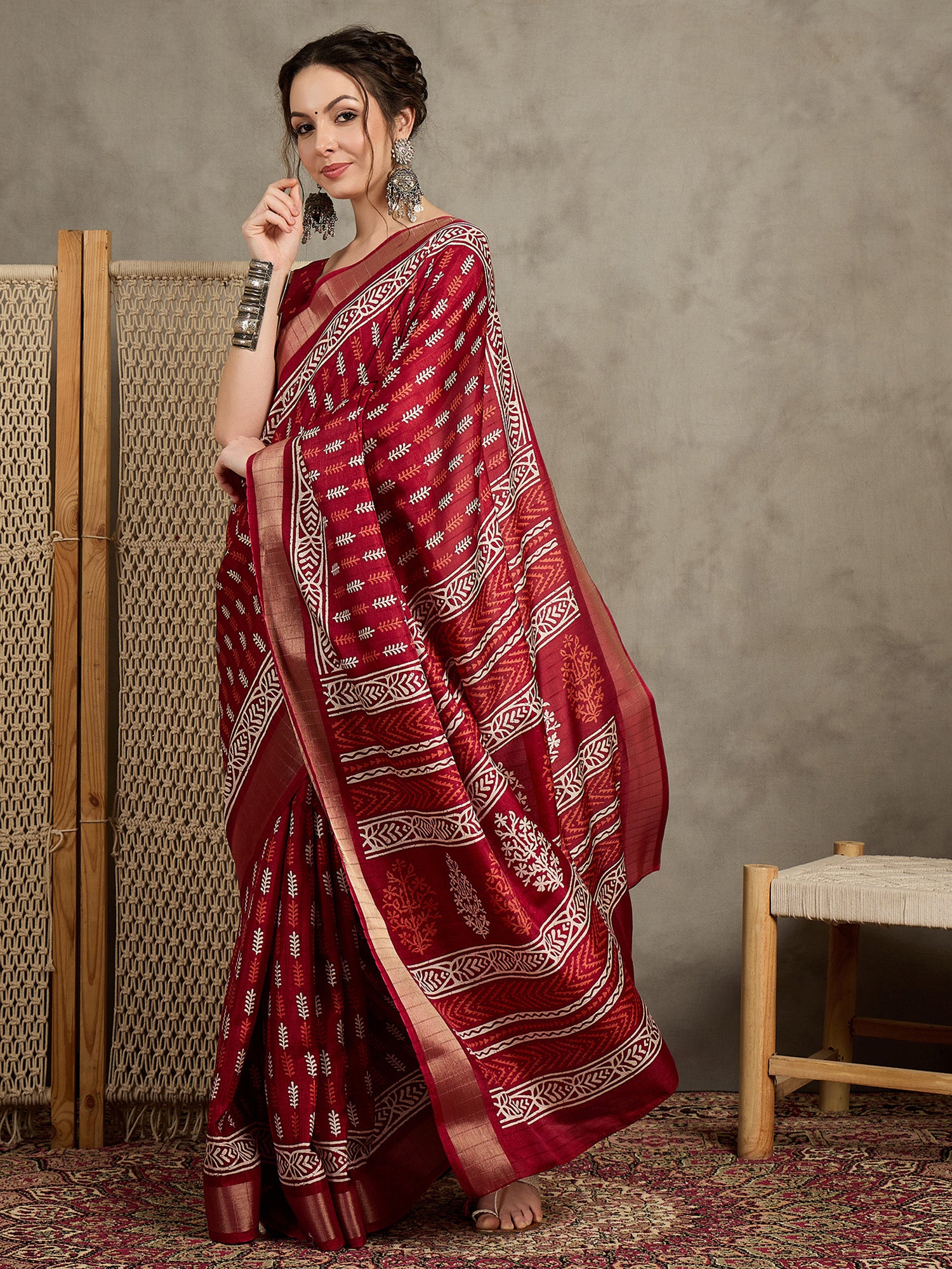 This saree from the house of Naari is made from Silk Blend and is Red in color. Naari Ethnic Sarees comes With Blouse Piece, Which can be Stitched according to Your Taste and Preference. This Saree is Crafted by Skill Craftsmen without Compromising on its Quality. With This Beautiful Design and Fabric, This Saree will fetch You Oodles of Compliments and Praise. saree fit size is 5.5 mtr saree & 0.8 mtr blouse, Free Size |.