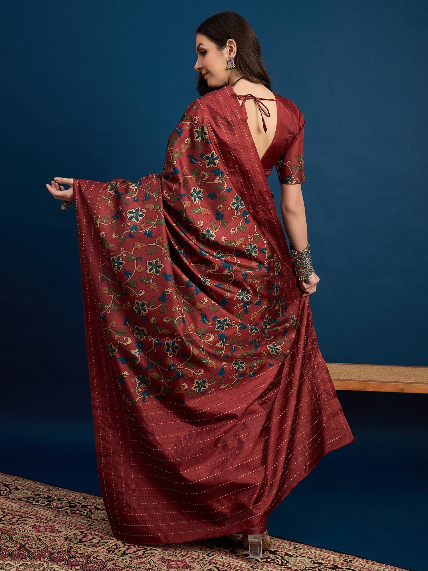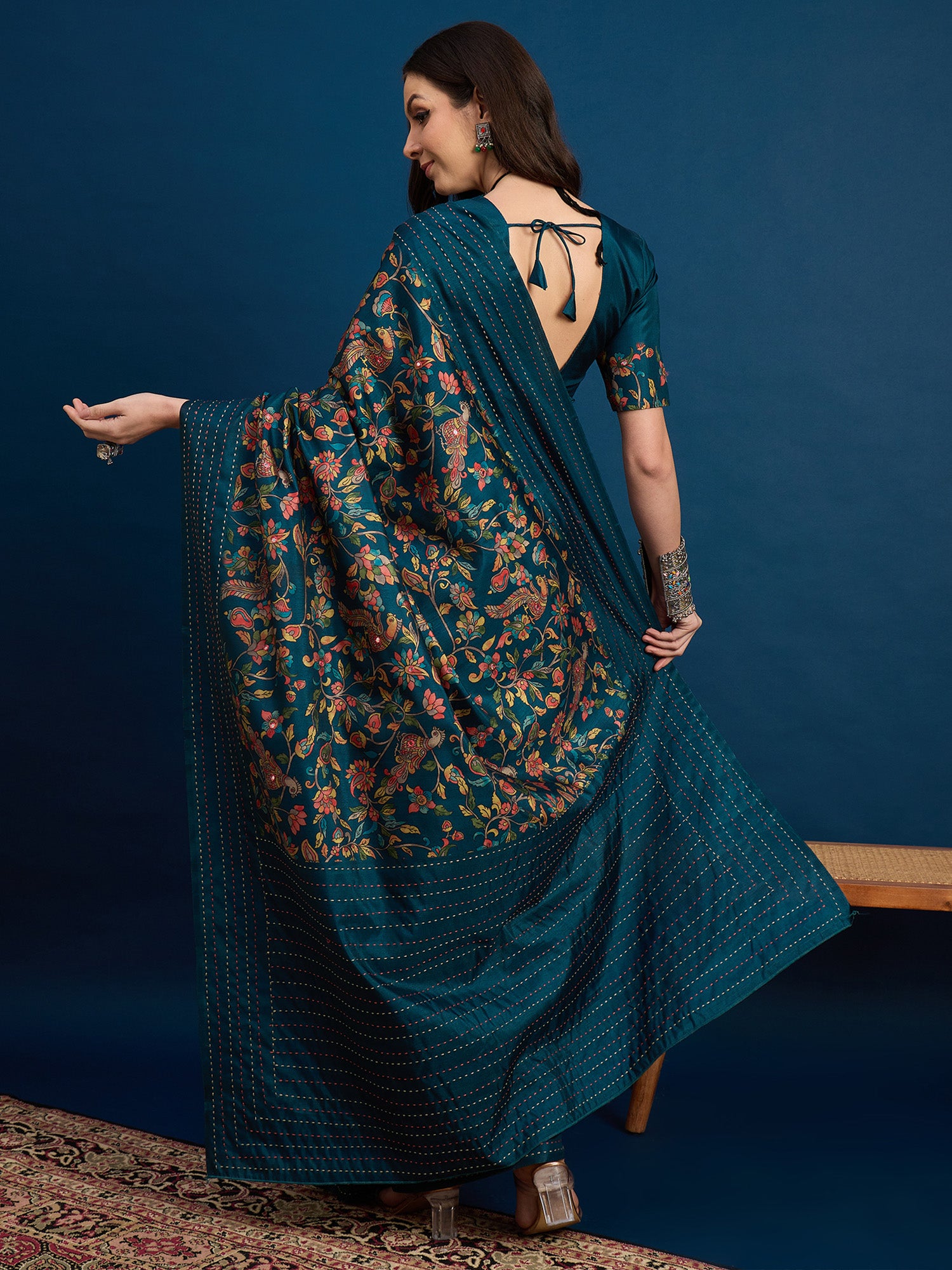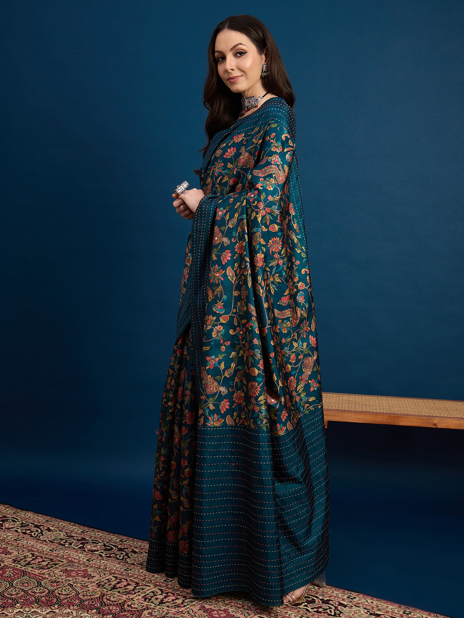 This saree from the house of Naari is made from Silk Blend and is Teal blue in color. Naari Ethnic Sarees comes With Blouse Piece, Which can be Stitched according to Your Taste and Preference. This Saree is Crafted by Skill Craftsmen without Compromising on its Quality. With This Beautiful Design and Fabric, This Saree will fetch You Oodles of Compliments and Praise. saree fit size is 5.5 mtr saree & 0.8 mtr blouse, Free Size |.