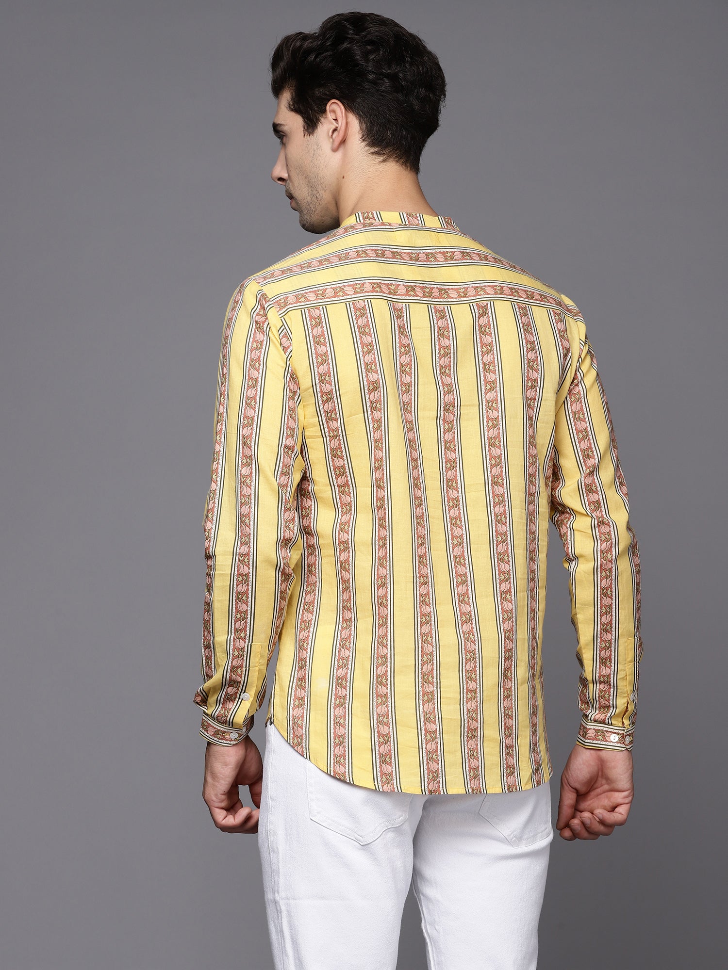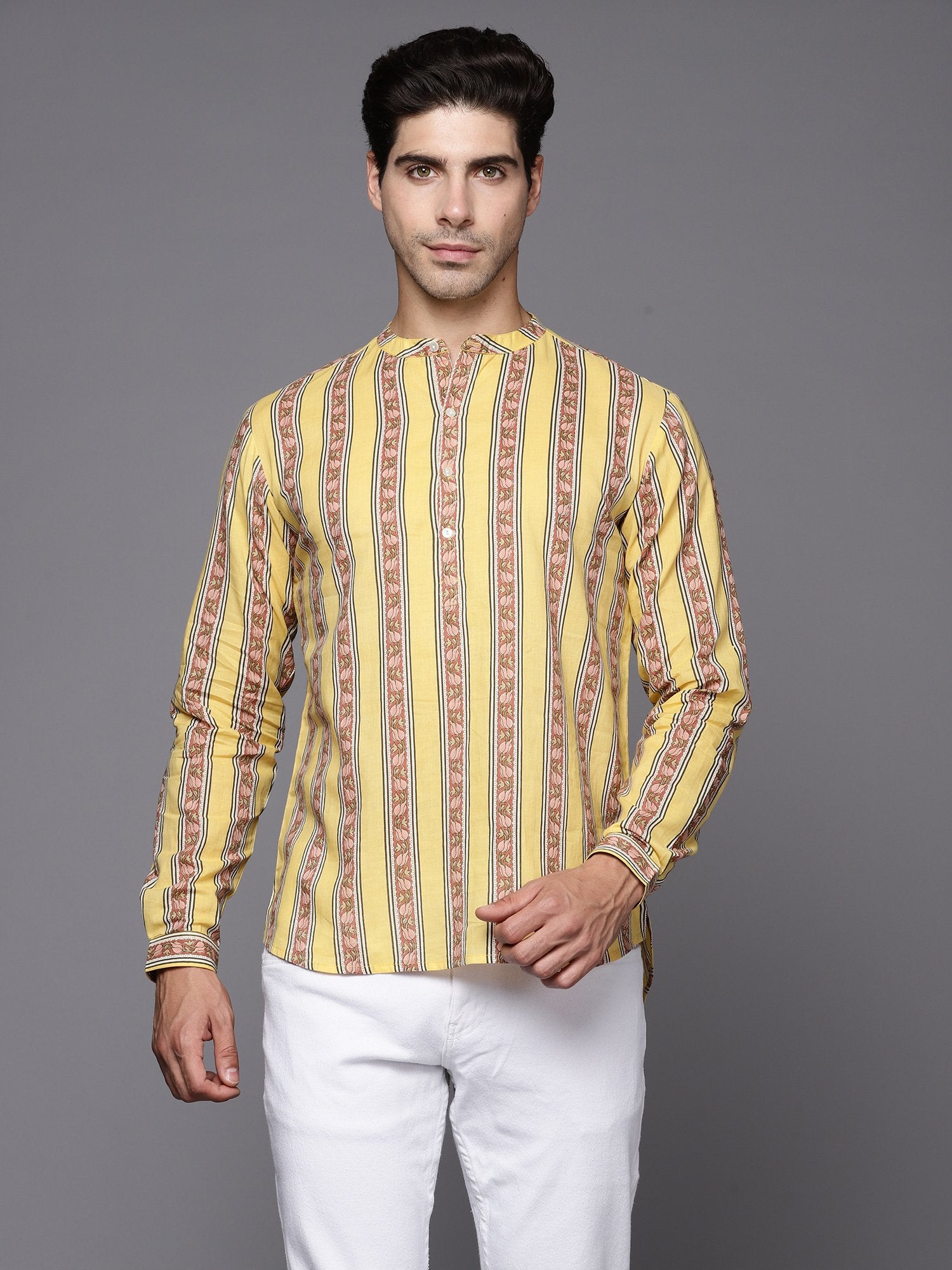 Indo Era Yellow Printed Cotton Straight Kurtas
